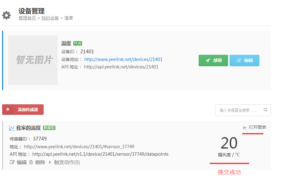 5:记住传感器的API地址,此API地址用户WiFi模块通信的链接URL。