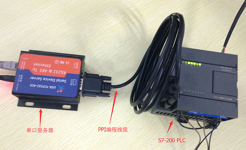 硬件连接:S7-200 PLC连接PPI编程线缆,PPI编程线缆的RS232端连接串口服务器的RS232口,串口服务器网口连接电脑网口或者路由器网口。