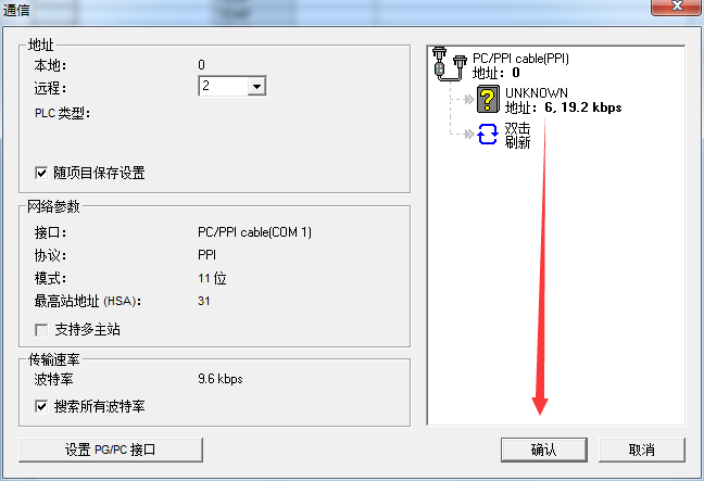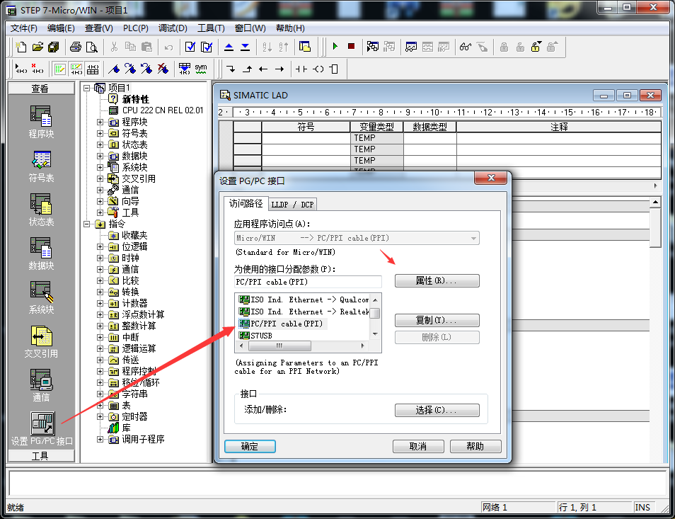 点击设置PG/PC接口,选择PC/PPI,点击属性,将超时时间设置大点,设置10S或者100S.然后点击本地连接选择刚才虚拟的串口com1.