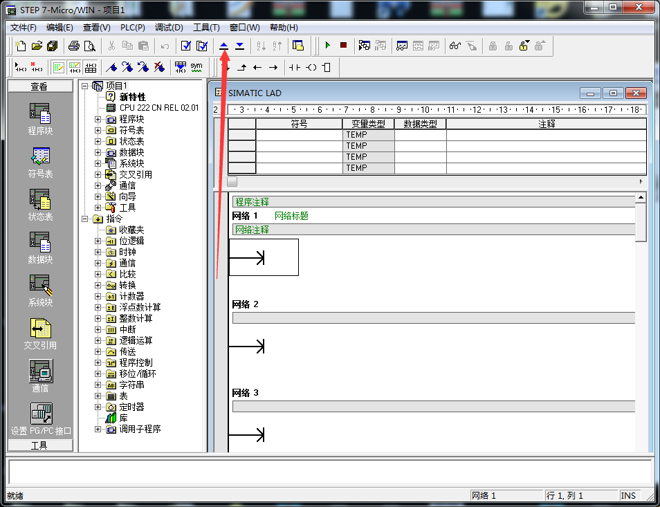 8:新建一个程序,写入程序,例子是一个:输入控制输出的一个程序。