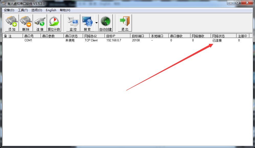 4:com1网络状态为已连接,说明网络通信OK。