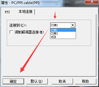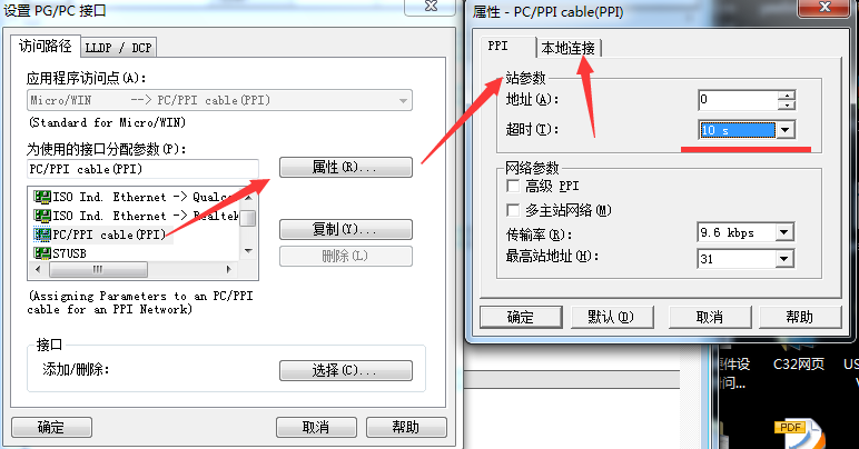 点击设置PG/PC接口,选择PC/PPI,点击属性,将超时时间设置大点,设置10S或者100S.然后点击本地连接选择刚才虚拟的串口com1.