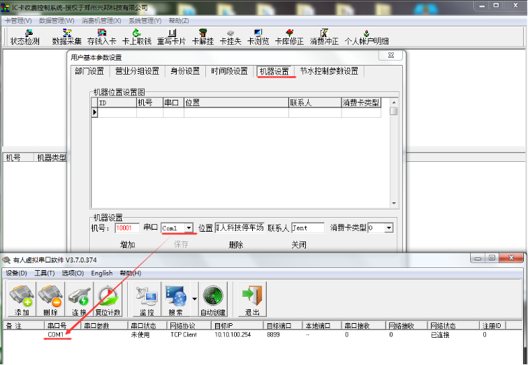 j)打开一卡通管理软件,在系统管理.用户参数设置用户基本参数设置机器设置中添加设备。