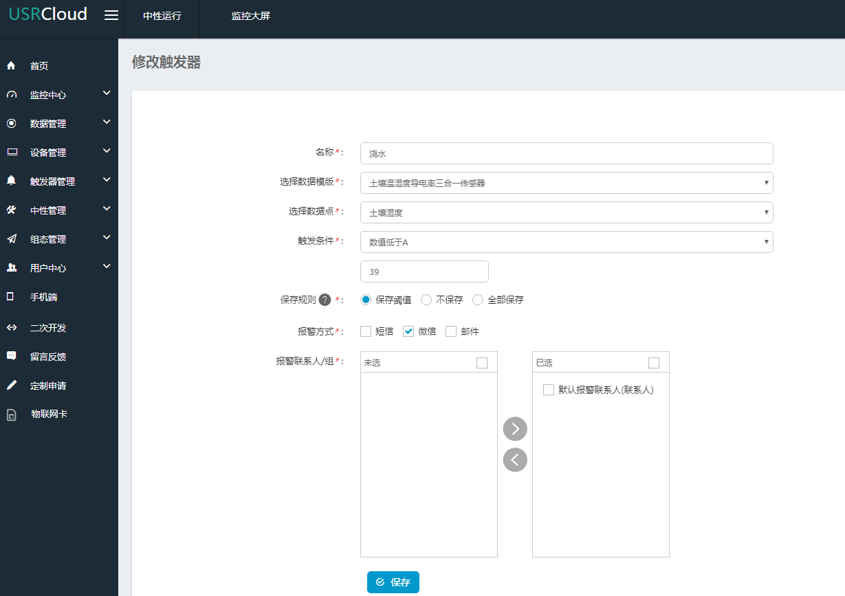 可以在透传云内添加报警触发器,当参数超过设置的值就发送报警信息给对应的微信账号,邮件或者短信。