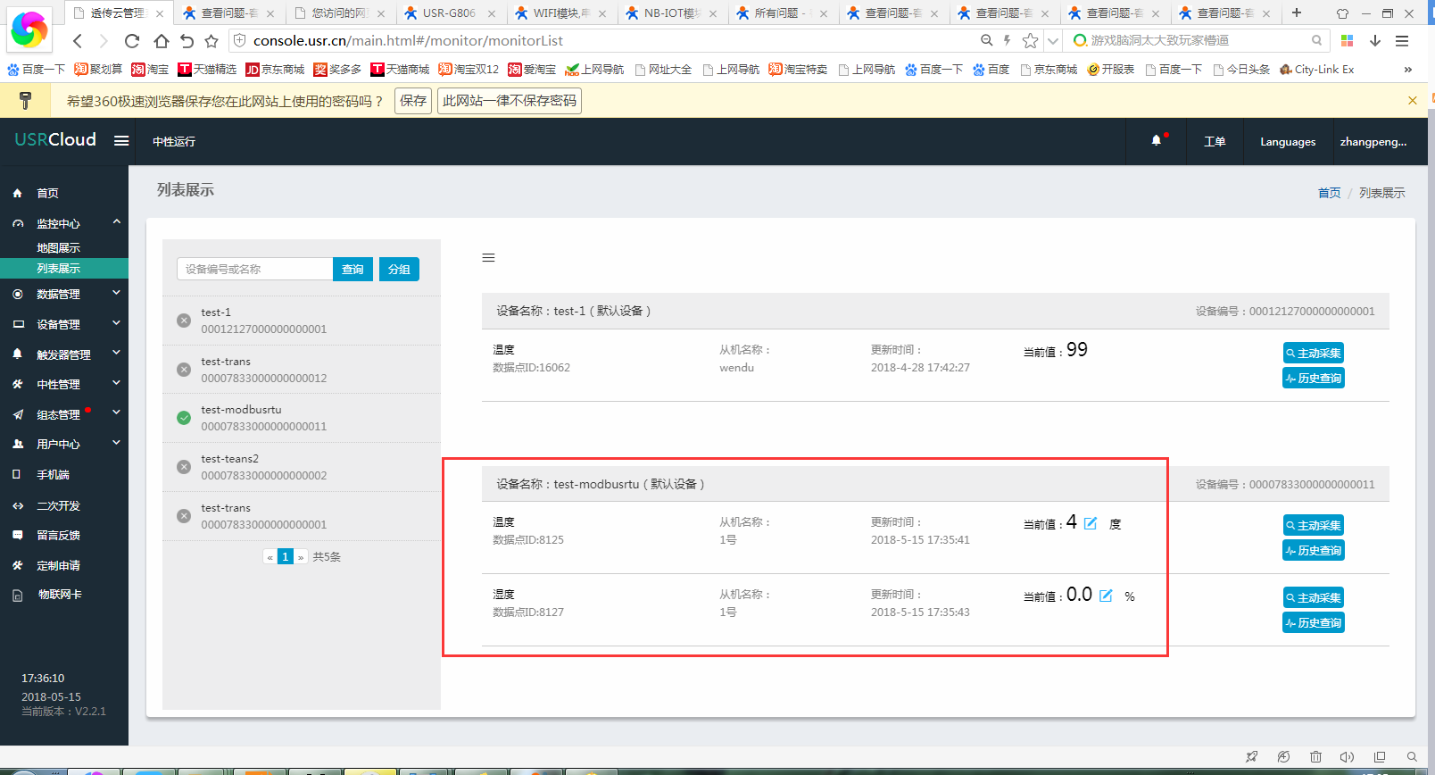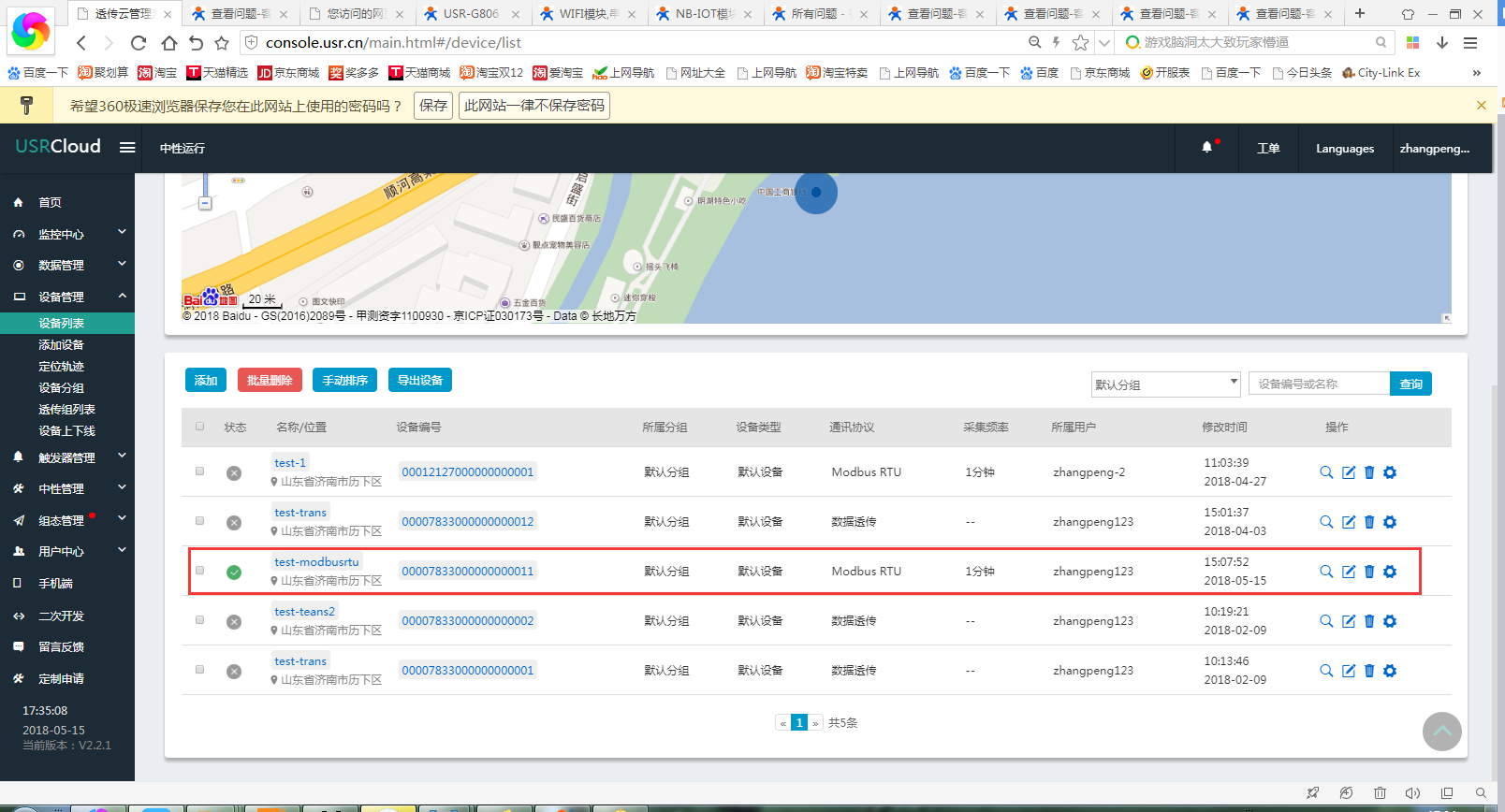 客户实际应用:modbus rtu设备---410s--路由器--透传云(组态显示)