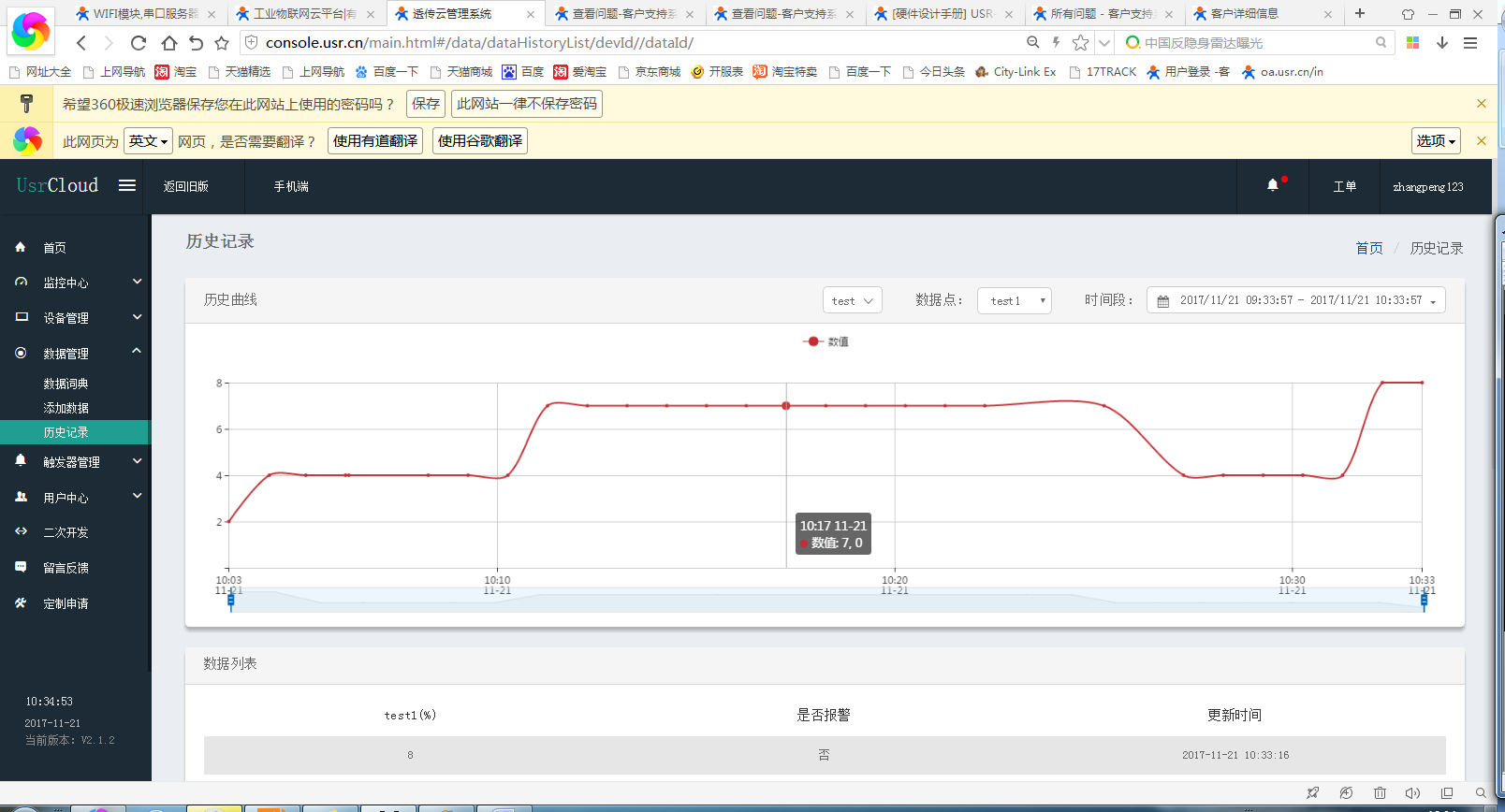 12、关注有人物联网公众号,点击右下角透传云,登录账号,报警信息可以推送至微信