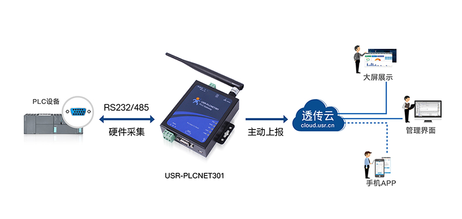 工作原理:内置主流PLC协议,主动采集PLC数据,边缘计算,变化的数据主动上报到平台。