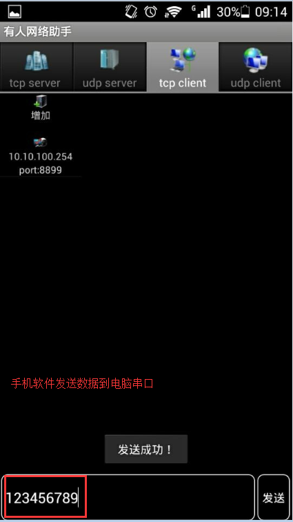 4:手机助手发送数据,电脑打开一个网络调试助手,接收手机端发送的数据。