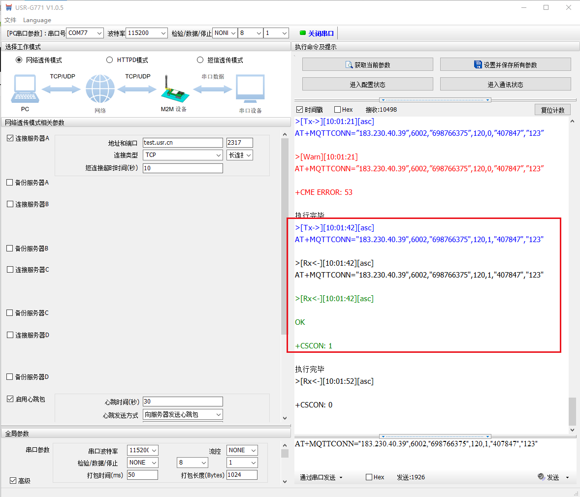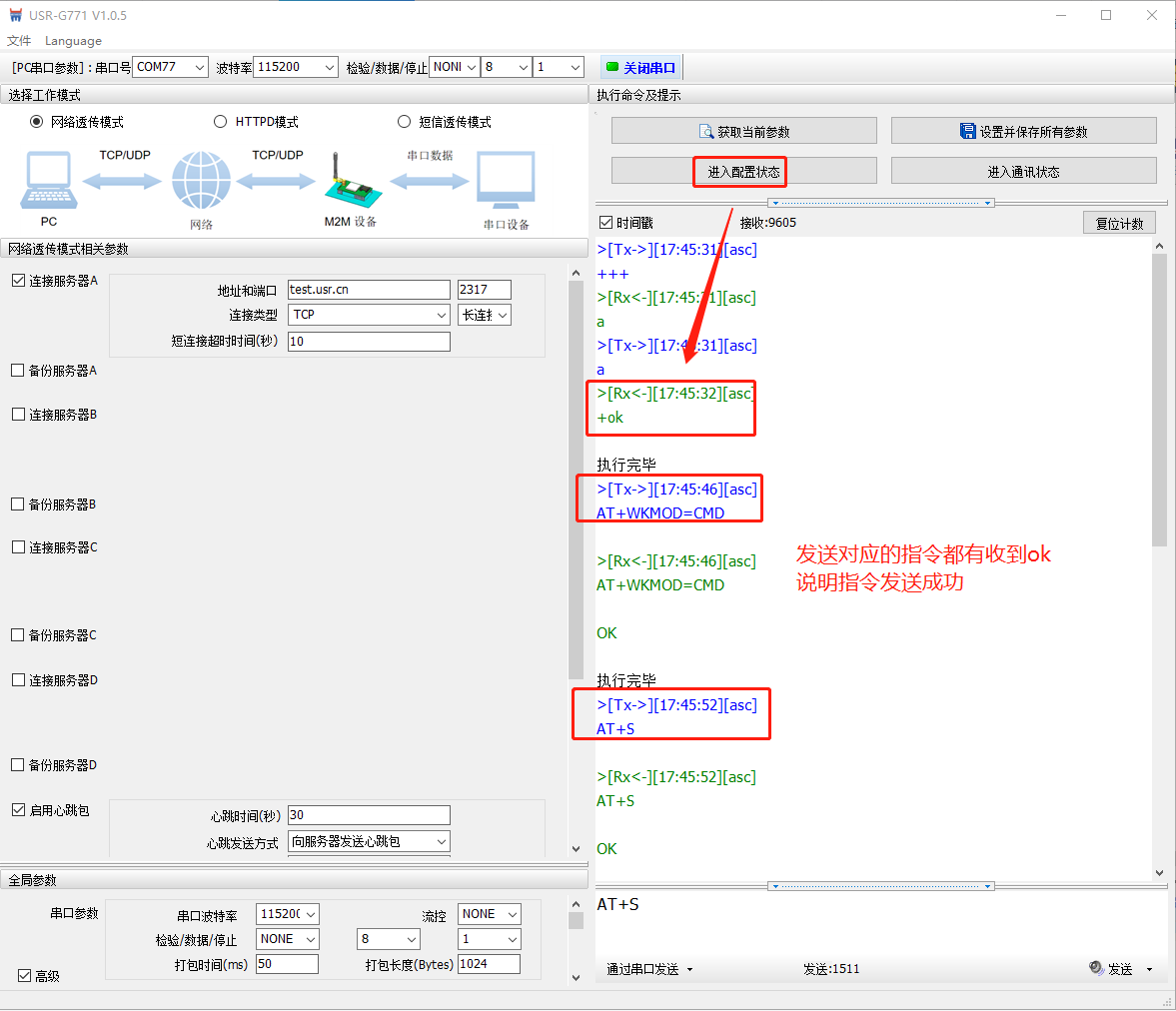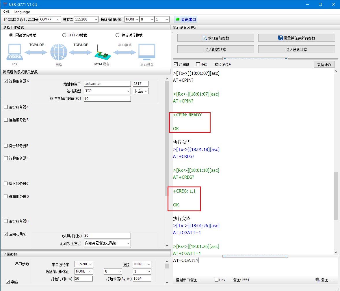 注意:G771工作在CMD模式下,不自动驻网,需要手动驻网,参考下面流程