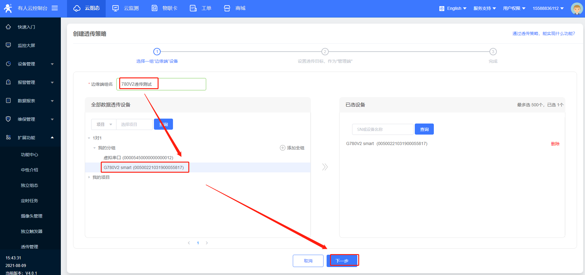 7>边缘端设备:选择G780V2这个设备