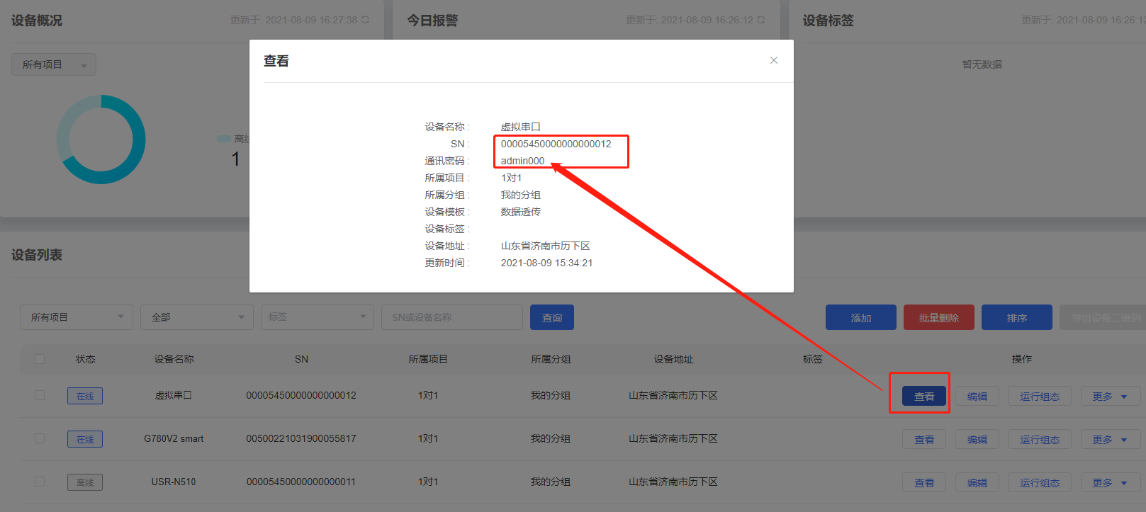 启用透传云:设备编号和通讯密码见下图,直接复制到虚拟串口软件的编号和密码即可