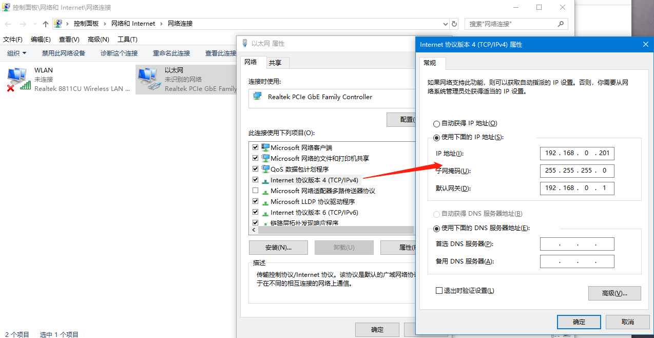 3、将电脑IP设置为与设备同网段的IP:192.168.0.201。