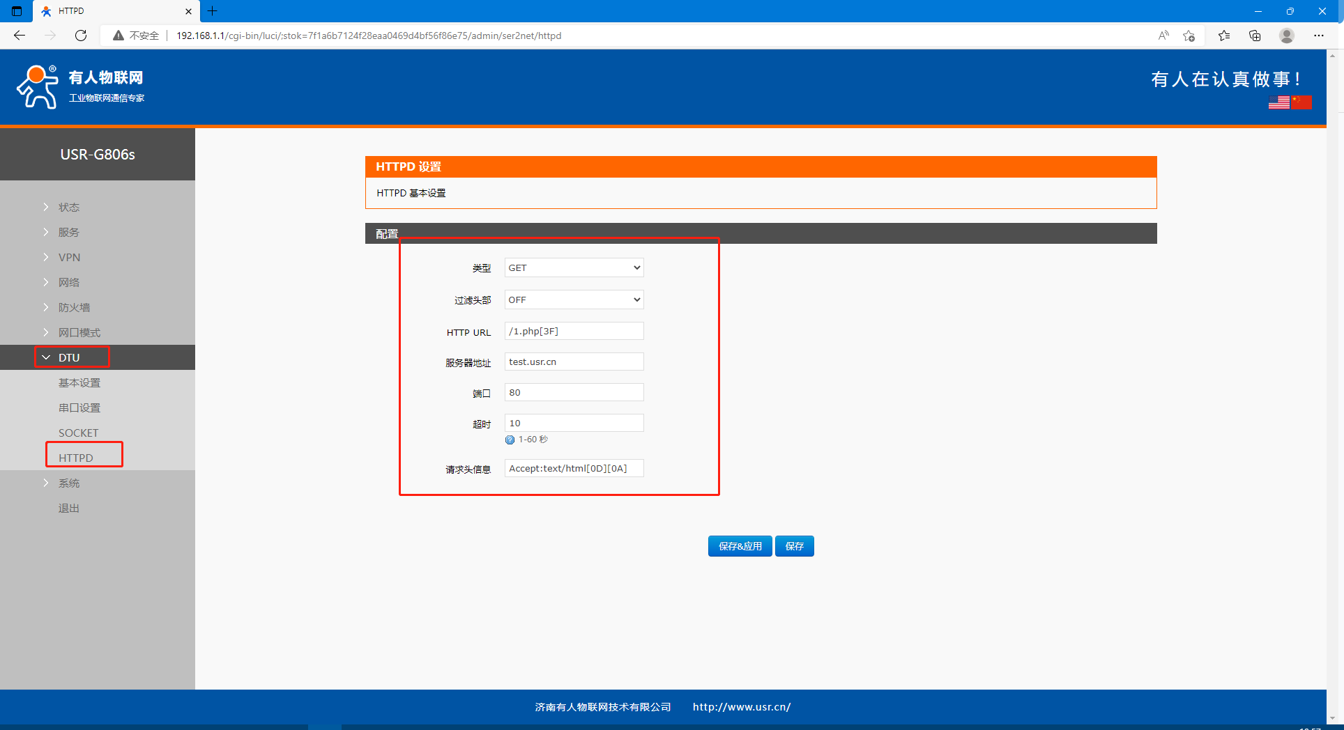 USR-G806s http协议GET方法基本测试案例
