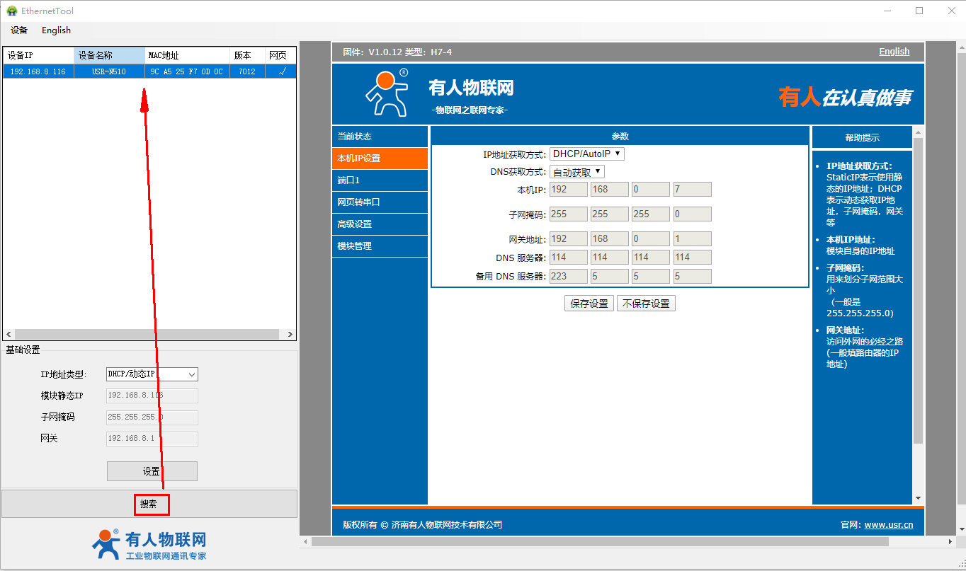 2、USR-N510-H7设置软件https://www.usr.cn/Download/383.html