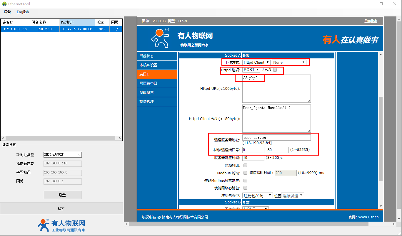 USR-N510-H7 HTTPD POST模式测试案例