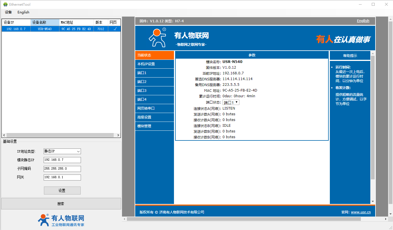 2、USR-N540-H7设置软件https://www.usr.cn/Download/383.html