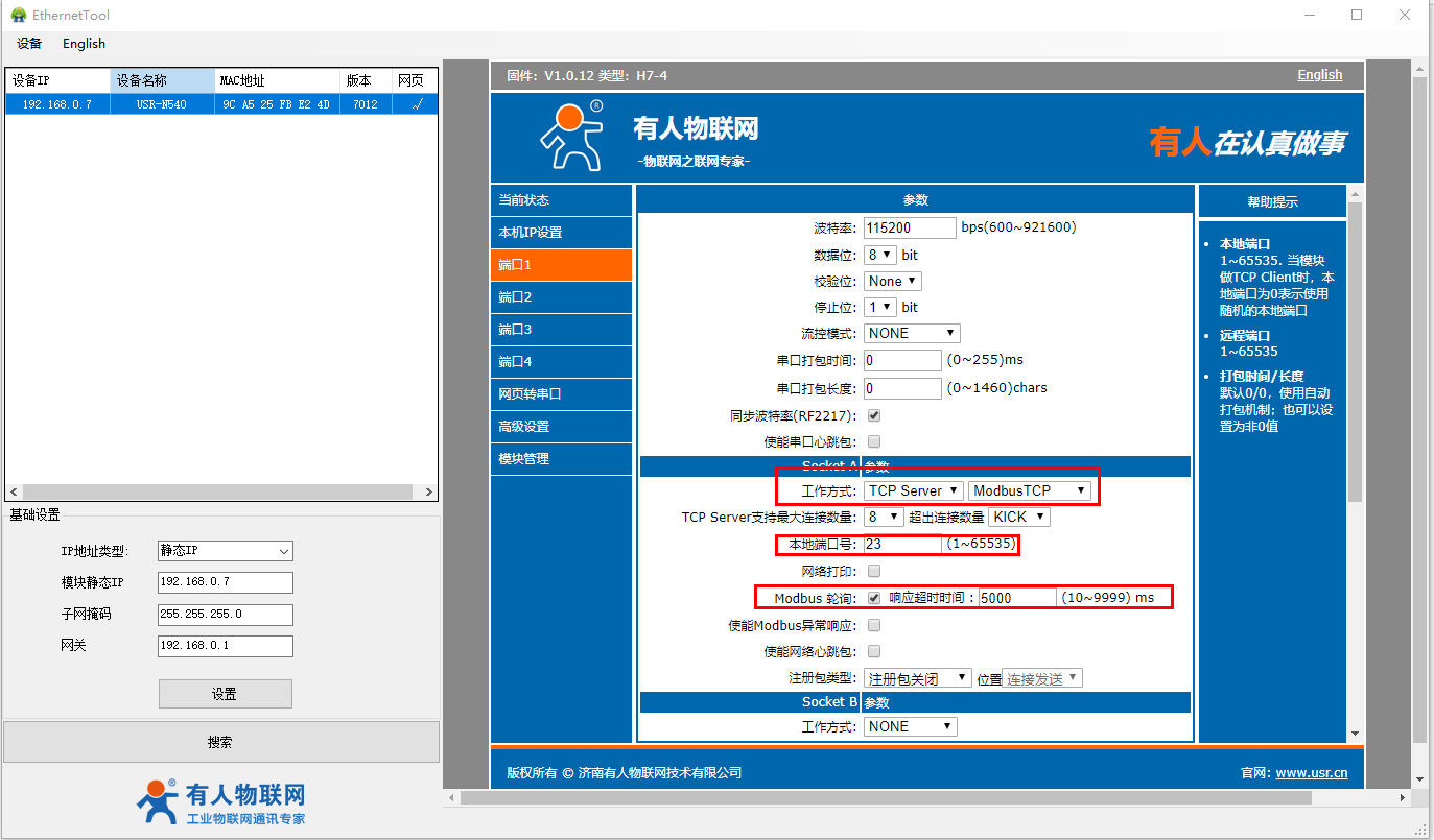 4、USR-N540-H7说明书https://www.usr.cn/Download/1087.html
