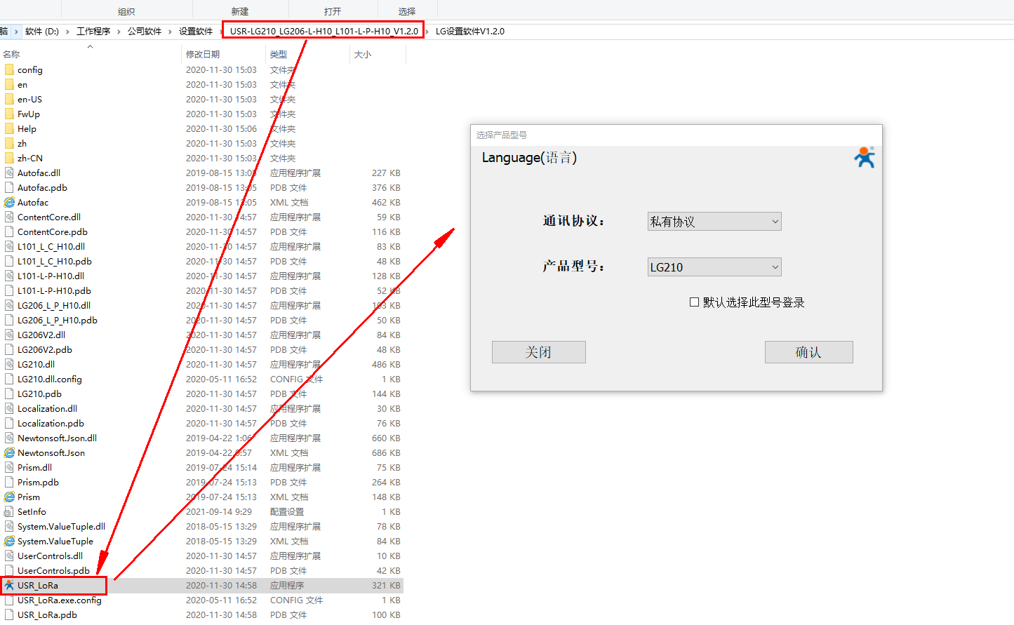 电脑下载并安装USR-LG210-L的设置软件,USR-LG210_LG206-L-H10_L101-L-P-H10_V1.2.0,解压缩后放在电脑桌面。
