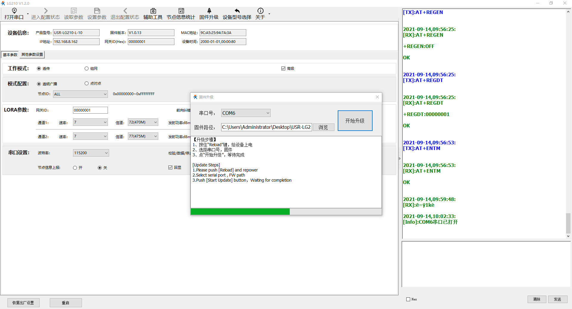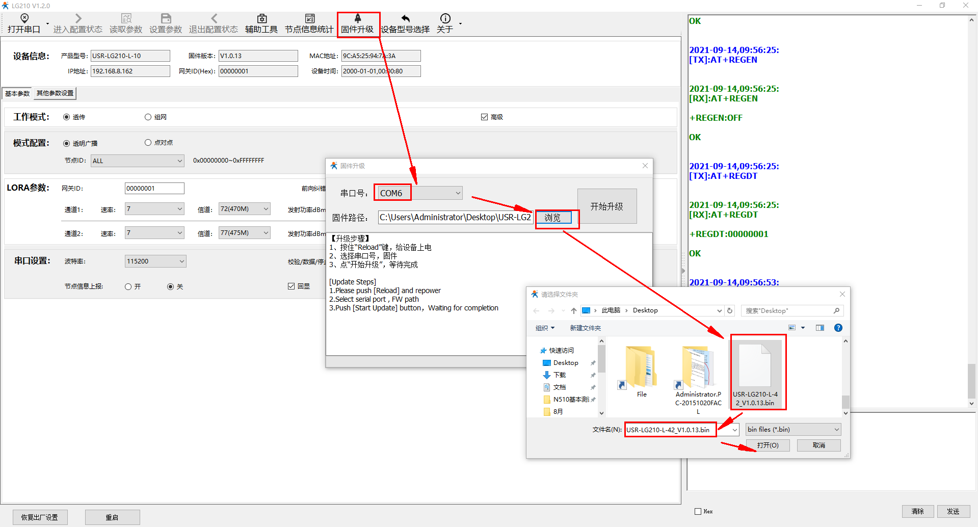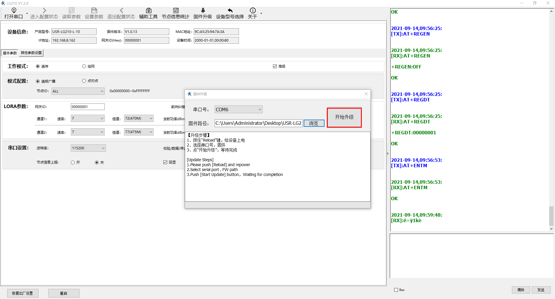 USR-LG210-L升级固件步骤示例