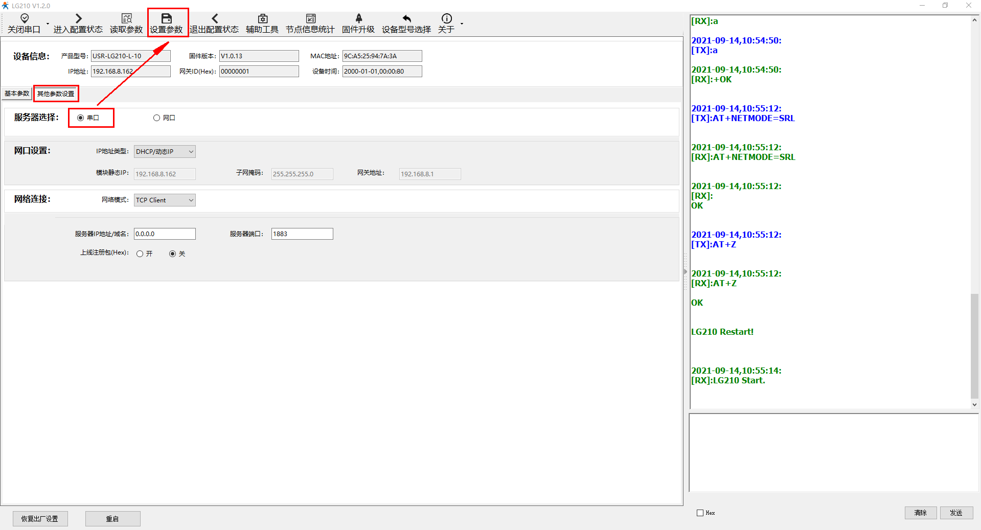 四、USR-LG210-L参数设置: