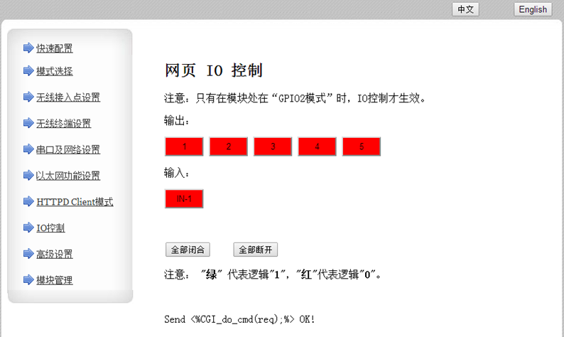 高性能Wi-Fi模块 普通版本和最新固件版本网页页面