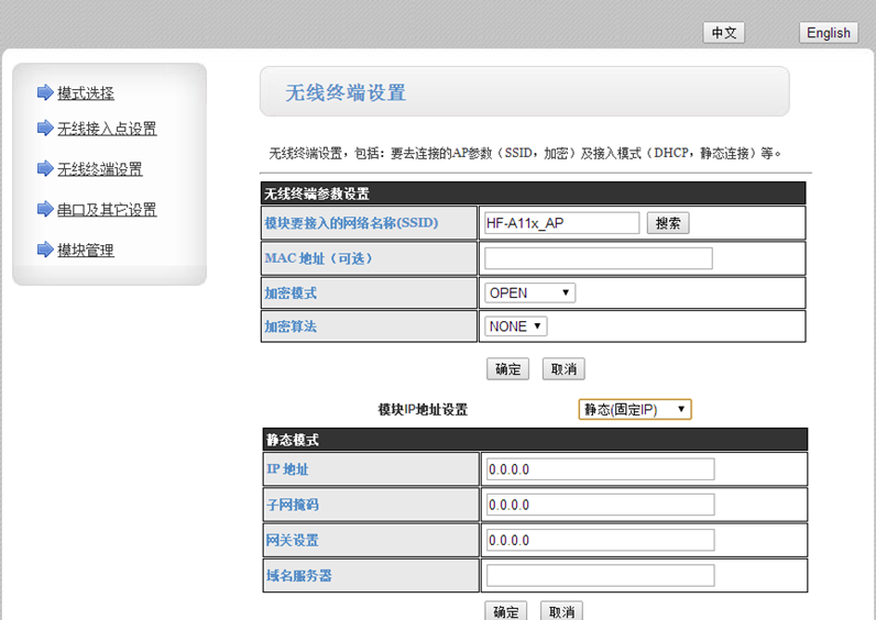 6:模块支持连接路由器之后为DHCP动态或者IP和使用静态IP