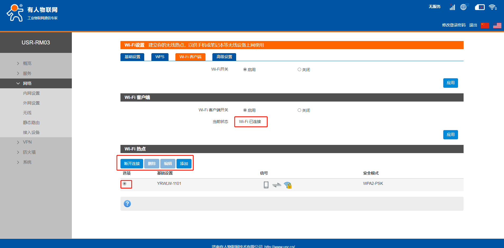 USR-RM03无线客户端功能连接上级wifi