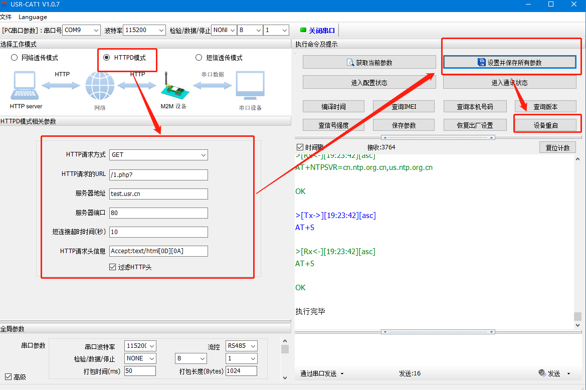 USR-DR154/152的http GET模式测试通讯和使用案例