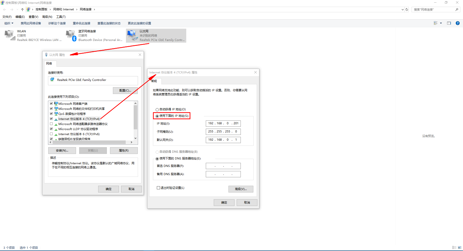 1)电脑本地连接,IP设置和N580 IP同网段,N580默认IP是192.168.0.7,网关192.168.1.1,电脑本地连接IPv4设置静态IP,192.168.0.201,子网掩码255.255.255.0,网关192.168.1.1
