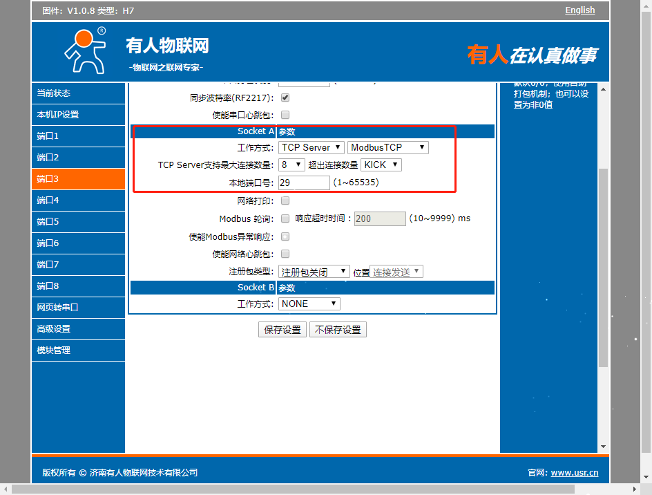 USR-N580-H7 MODBUS网关功能