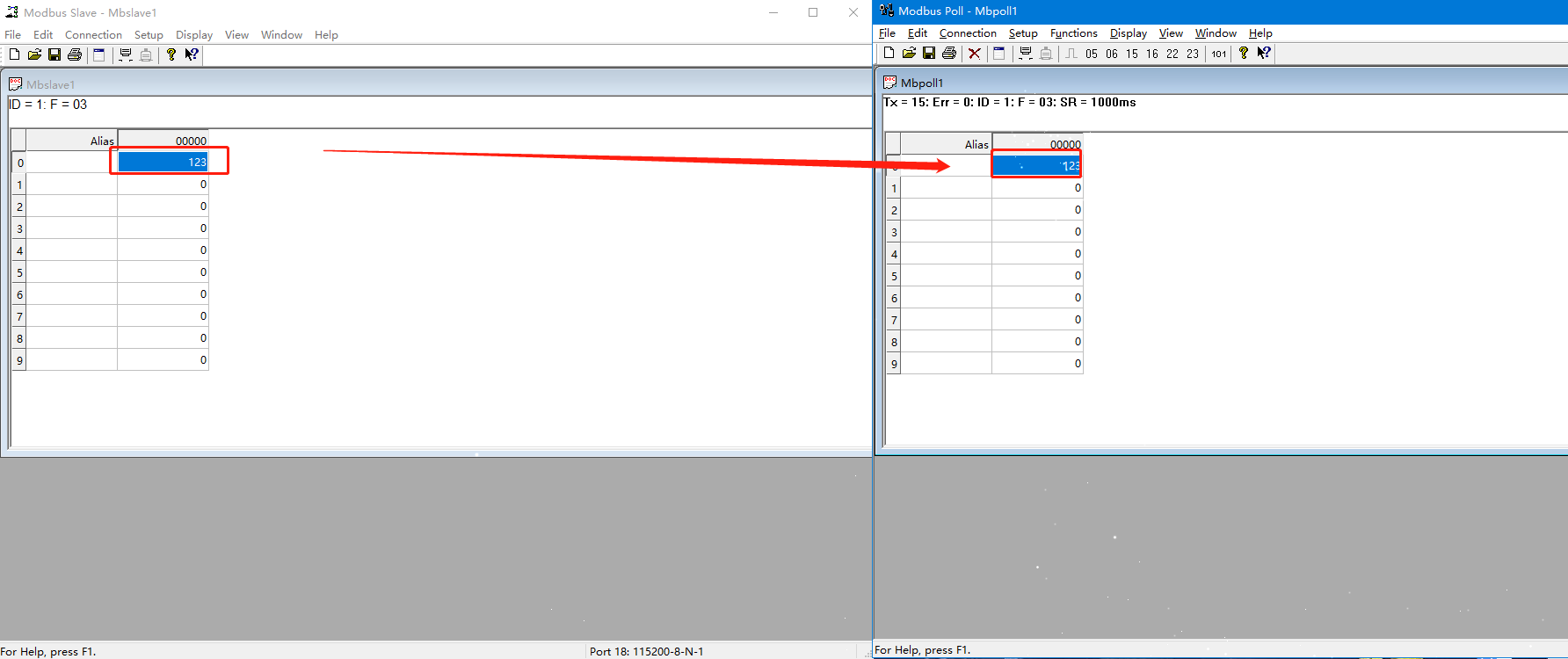 4.测试数据能否通信,通信成功,转换完成。