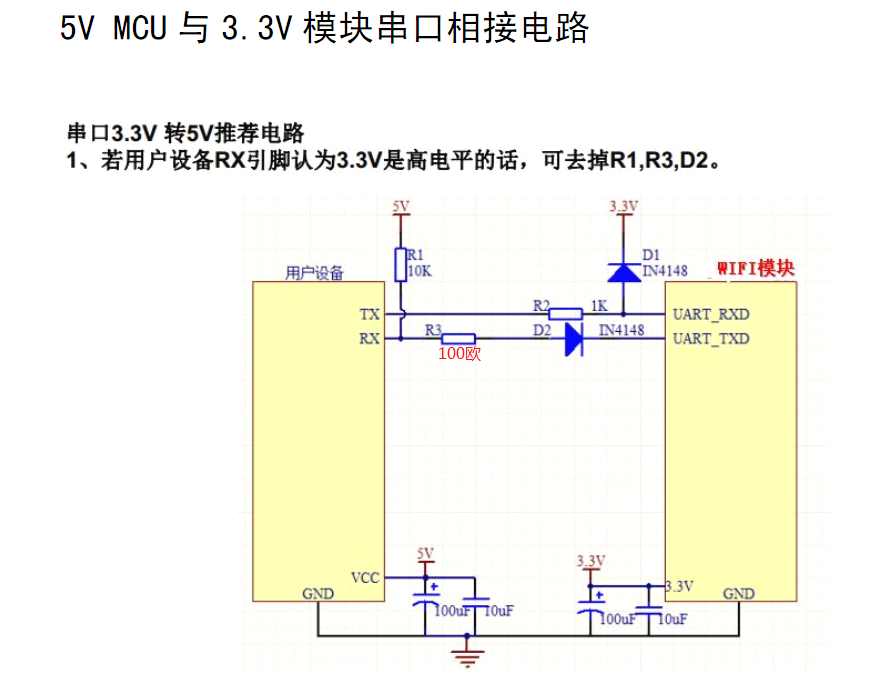 5v单片机UART接口与3.3v 模块UART接口连接参考电路