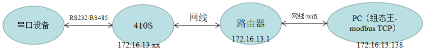 1>硬件连接:410S的串口通过USB转232/485连接到电脑上,电脑和410S接在同一个路由器上