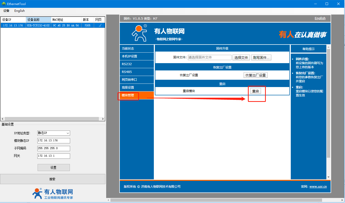 串口网络二合一调试助手:https://www.usr.cn/Download/27.html