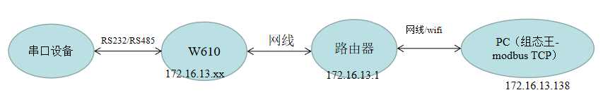 1>硬件连接:W610的串口通过USB转232/485连接到电脑上,接上wifi天线,供电