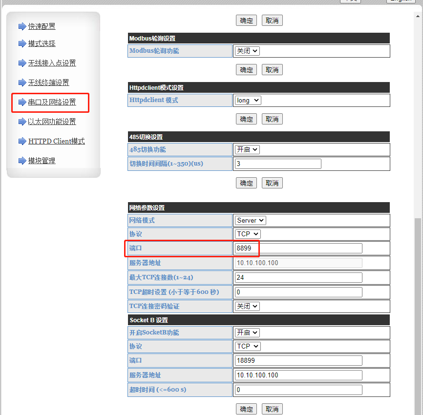 8899:是W610的本地端口号,可以在串口及网络设置界面中查询以及修改