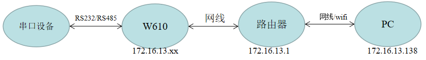 1>硬件连接:W610的串口通过USB转232/485连接到电脑上,接上wifi天线,供电