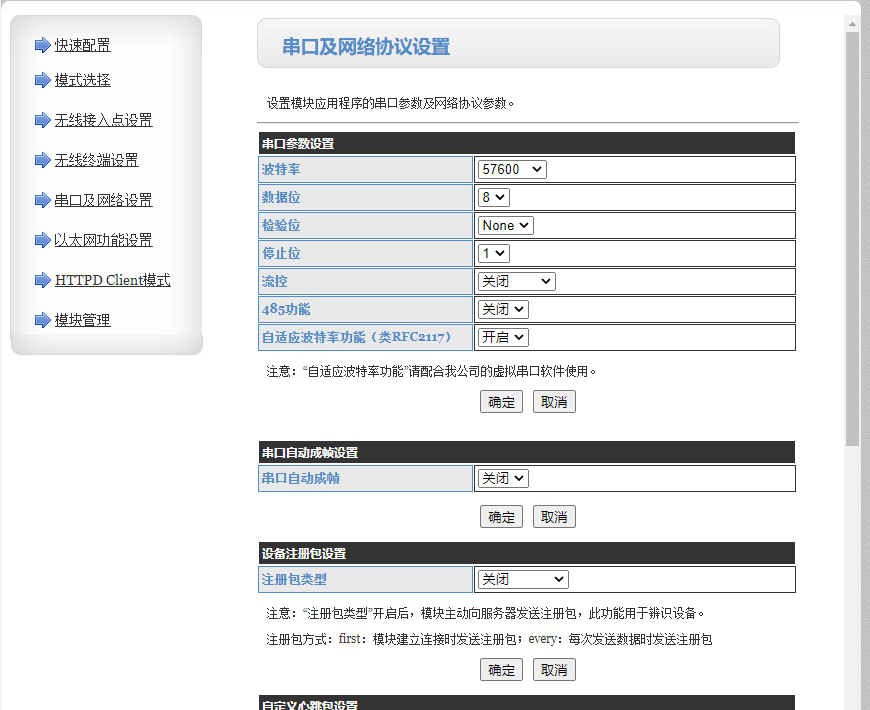 5>串口及网络设置,可以根据实际情况修改W610的串口等参数在本案例中我们保持W610出厂默认参数