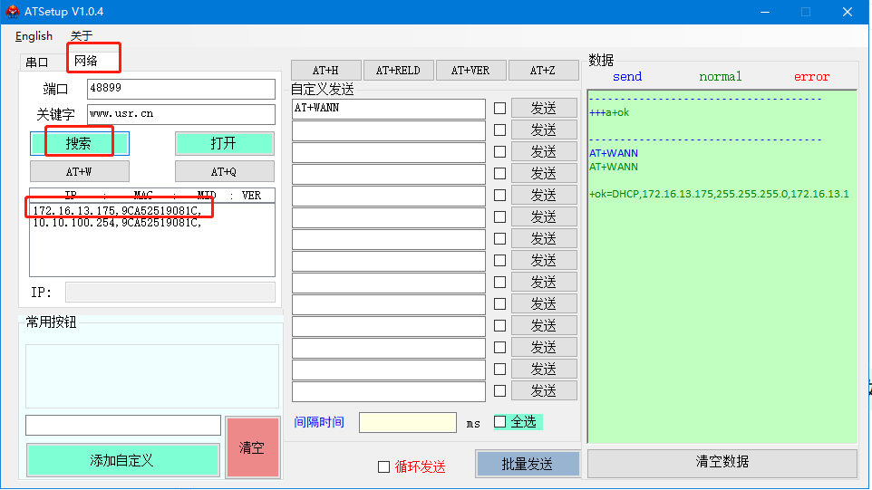 AT指令软件:https://www.usr.cn/Download/91.html