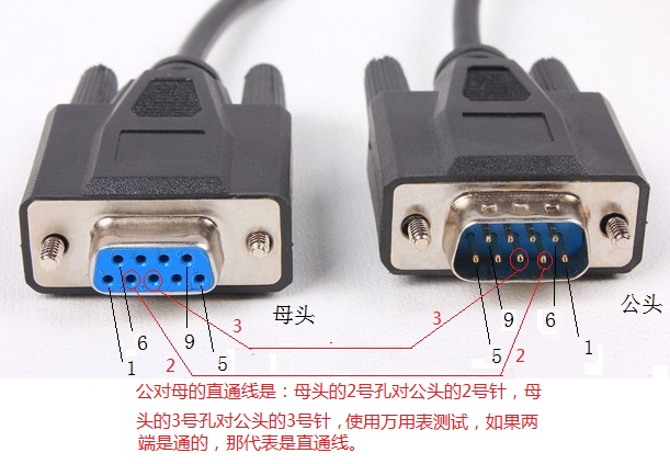 如果用户串口设备与串口服务器连接使用公对母串口线,那必须使用公对母直通线。