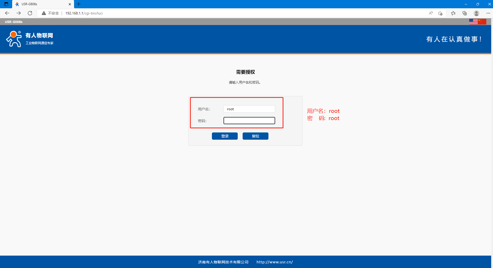 2.浏览器地址栏输入192.168.1.1进入G806s的配置网页,默认密码root