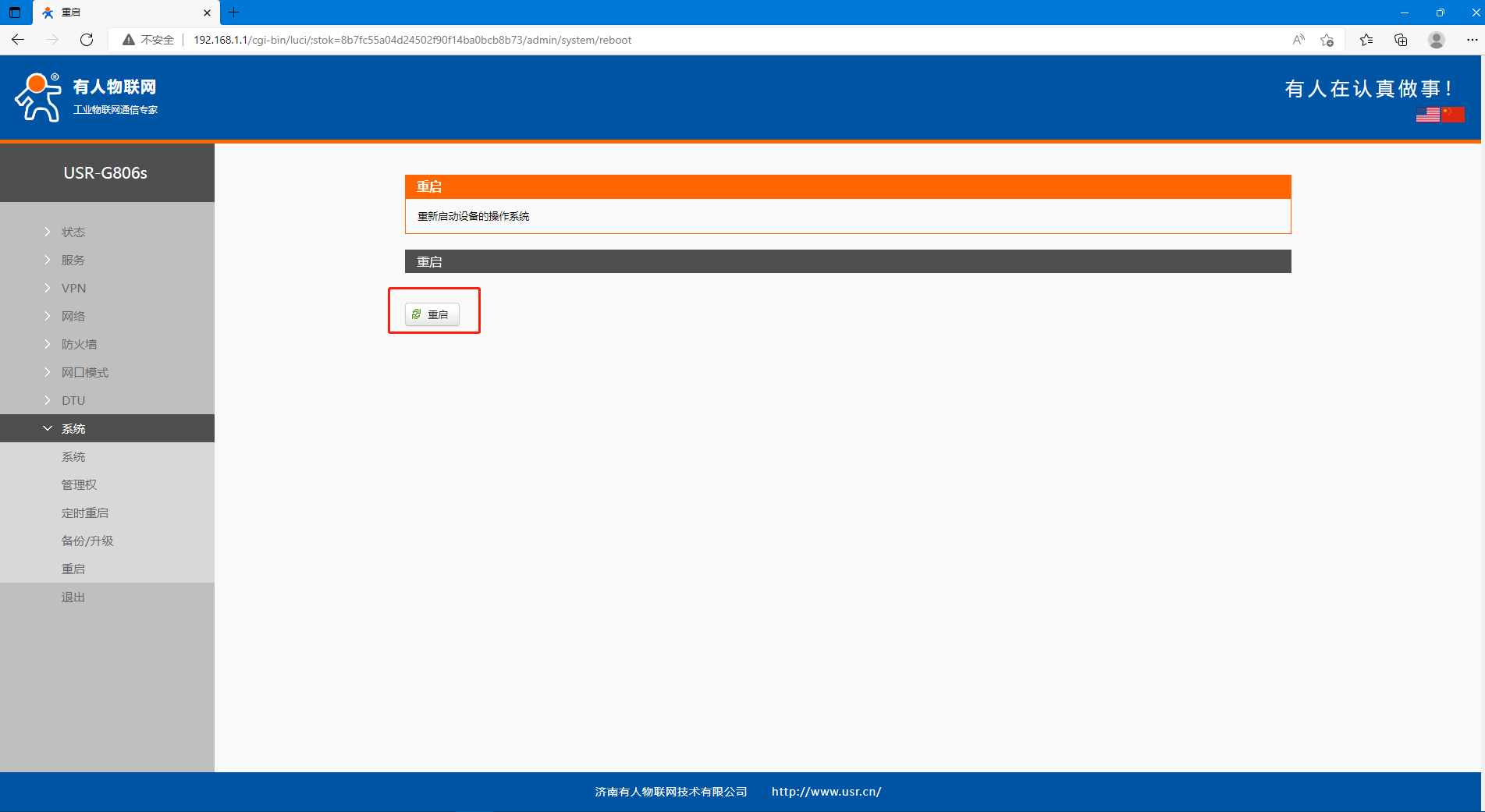 4.修改完成后点击应用,在系统--重启页面重启设备。