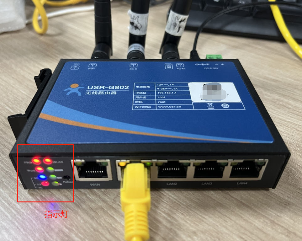 注意:上电之后,观察指示灯:PWR常亮、WLAN灯常亮、4G 灯(3G+2G 灯)点亮、信号灯全亮代表信号良好