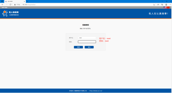 (2)在配置网页界面,与直接进入设备内置网页是一样的,需要输入内置网页密码:root