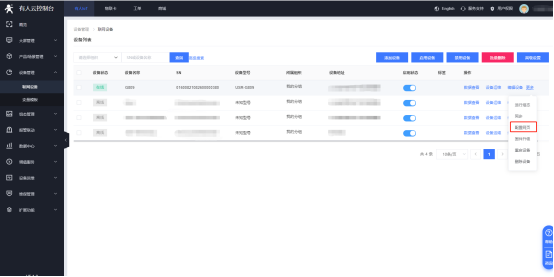 (1)在有人云的“设备列表”--“联网设备”界面,找到想要进行参数配置的设备,点击“更多”,选择“配置网页”