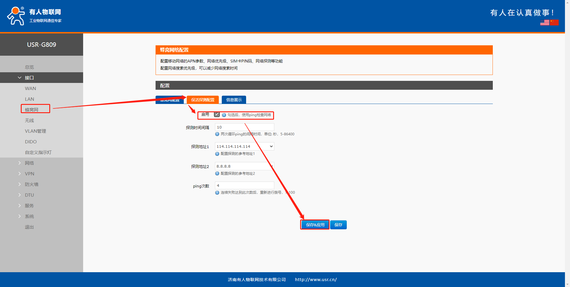 3、接口---蜂窝网--蜂窝网配置---保活探测配置---启用