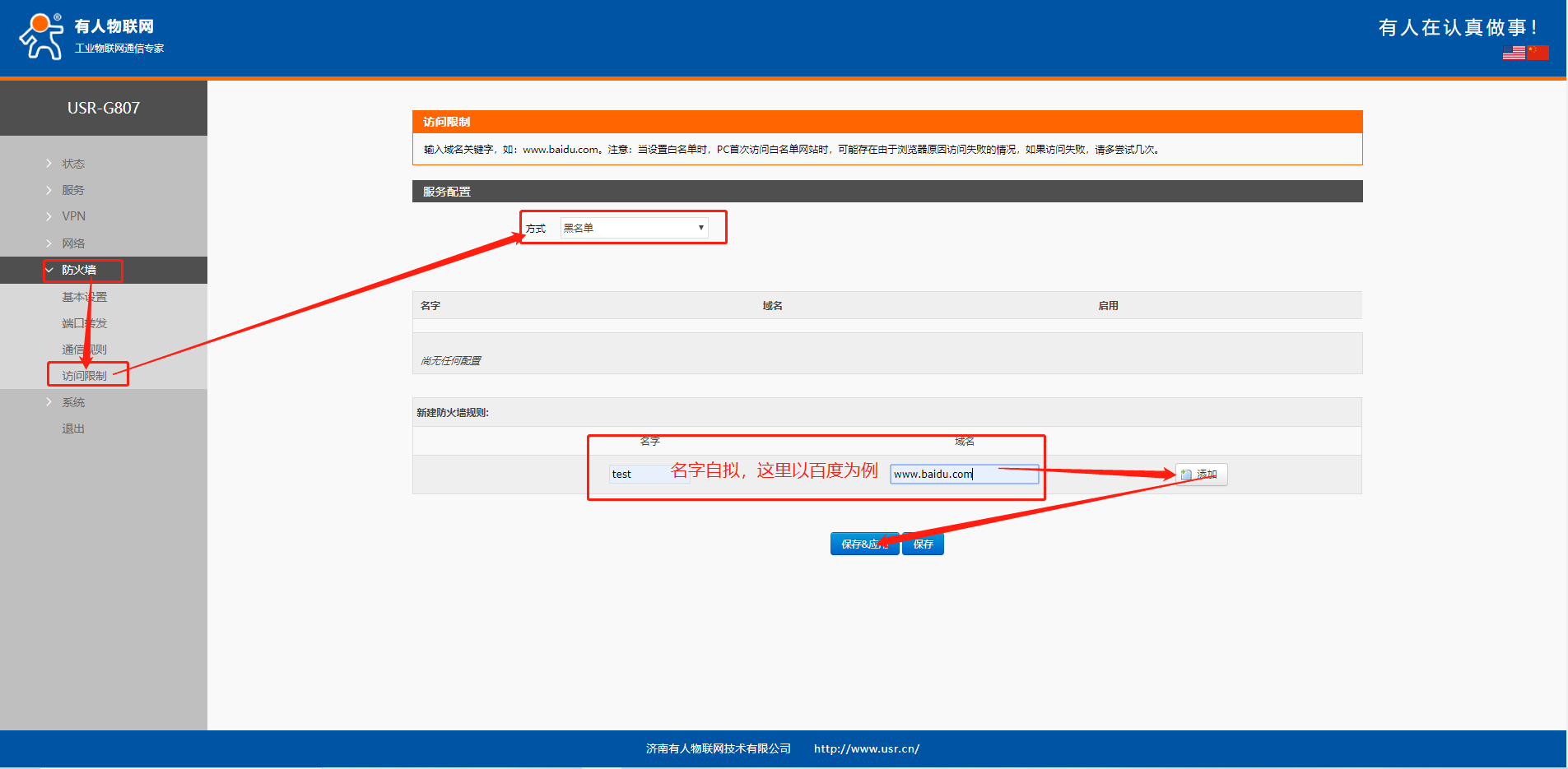 USR-G807域名黑白名单设置