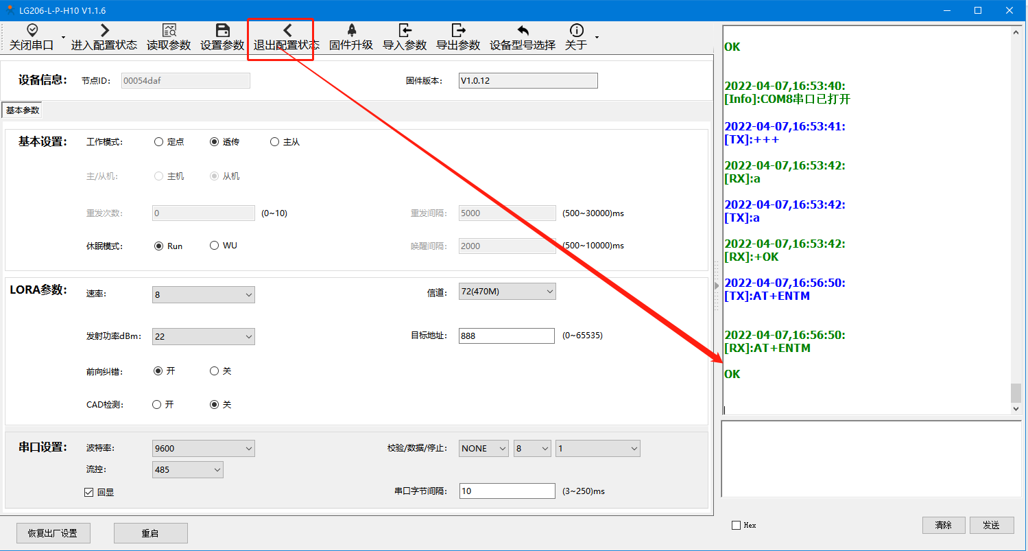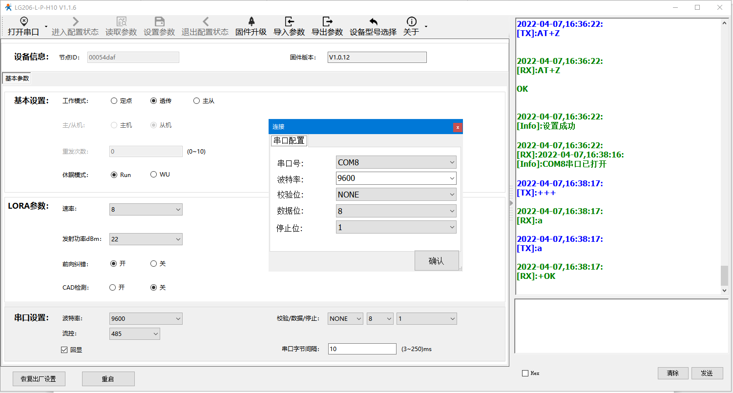 设置并保存参数,lora模块会自动重启,等待启动成功