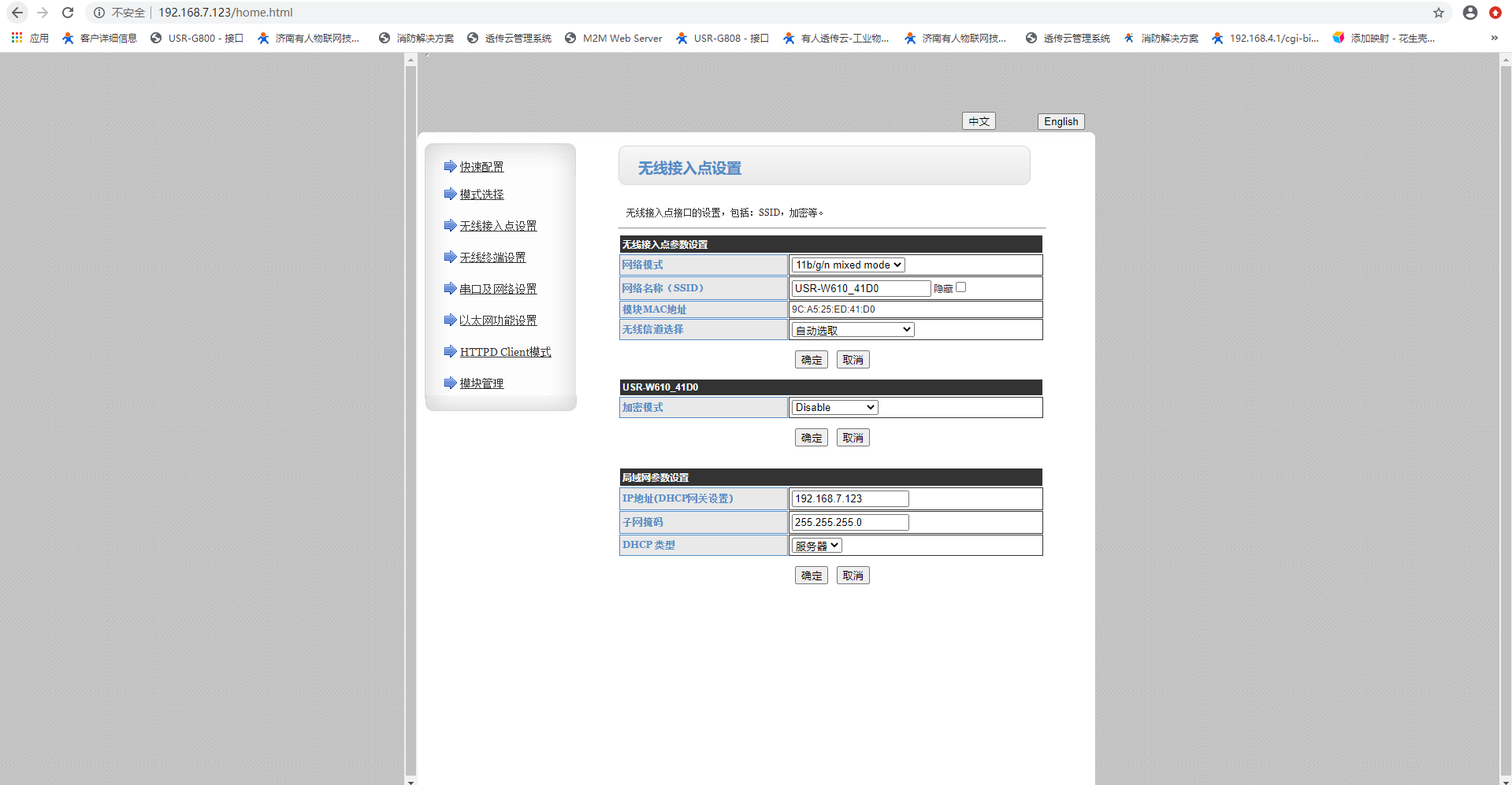 3、浏览器输入这个IP,重新登录USR-W610网页,去配置桥接模式。