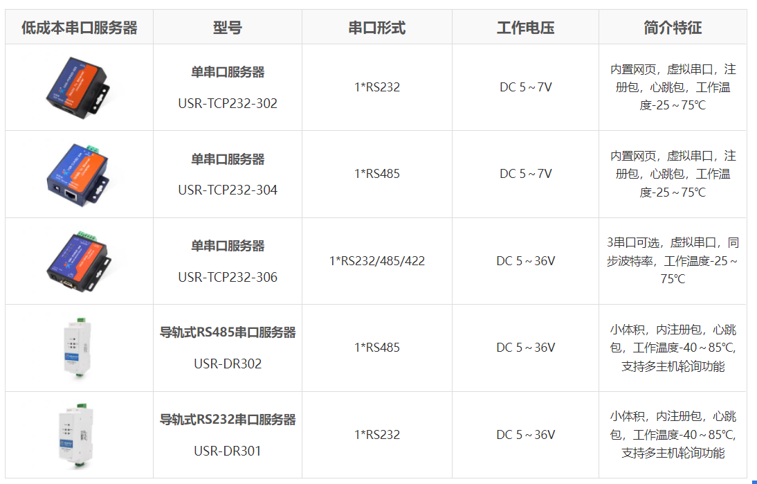 工业级串口服务器系列产品资料:https://www.usr.cn/Product/cat-79.html